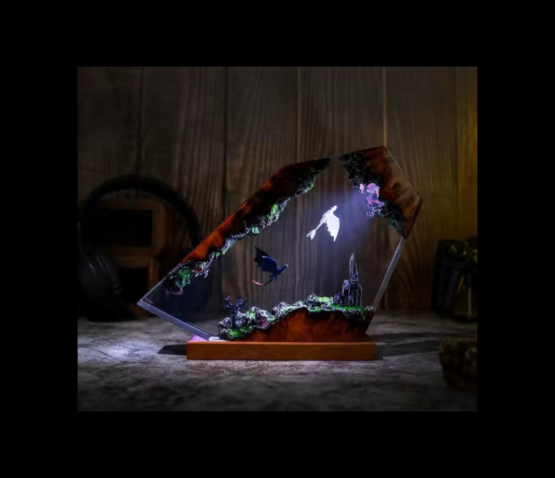 My father designs all of the resin lamps handmade ensuring that every lamp is different and unique but also made with love.